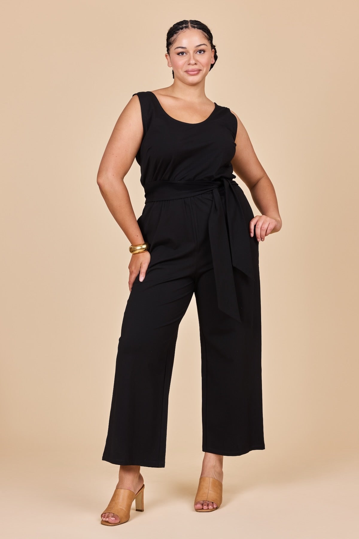 Our much loved spunky Black Stretch Jumpsuit... but sleeveless! Dress this baby up or down - it's your new everyday wardrobe BFF. Perfect for those super warm days and for layering in the cooler weather.